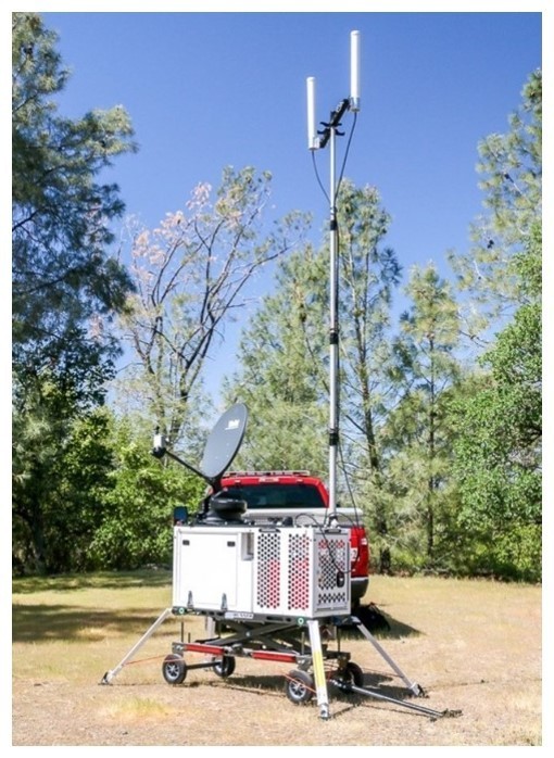 FirstNet Compact Rapid Deployable Units (CRDs) are standalone cellular towers which provide cellular and internet connectivity for use during network outages or in areas where cellular service is unavailable or unreliable, with Band 14 cellular coverage, Wi-Fi capability, and an integrated Ka-Band satellite system. The package is compact, weather- and waterproof, and easily transportable via road or air.