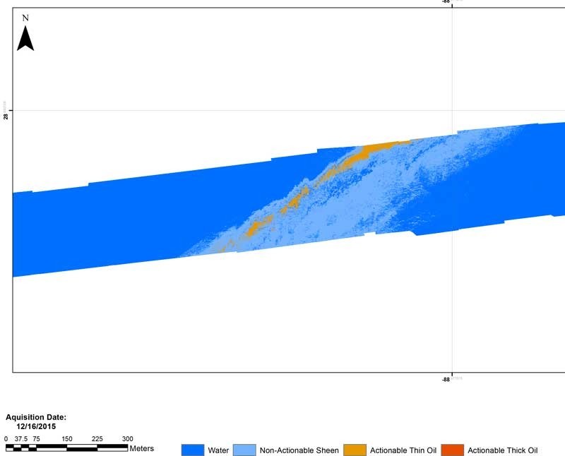Aerial Imaging System can be used for wide-area oil spill detection and classification as recoverable or non-recoverable oil, or oil distribution mapping used for the Common Operating Picture. Both objectives require the use of the Multispectral/TIR imaging systems but different flight patterns are flown to accomplish the objective.