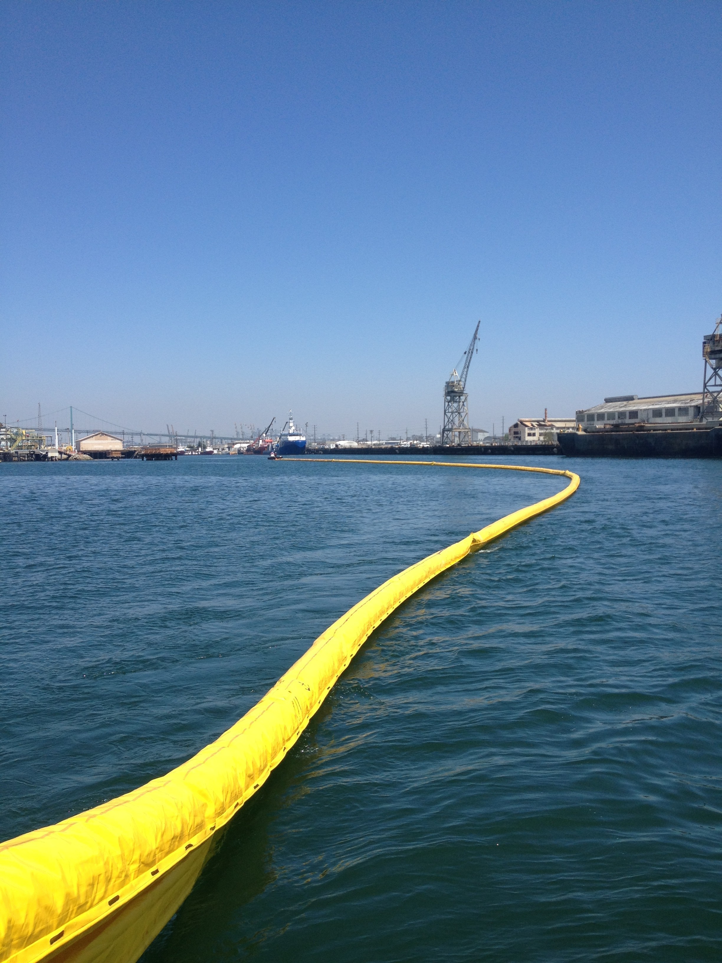 Boom that is capable of operating in large waves, foam crests and some spray.