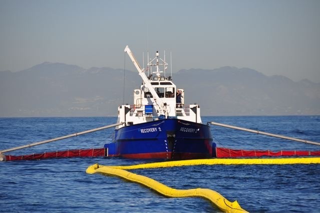 Boom that is capable of operating in large waves, foam crests and some spray.